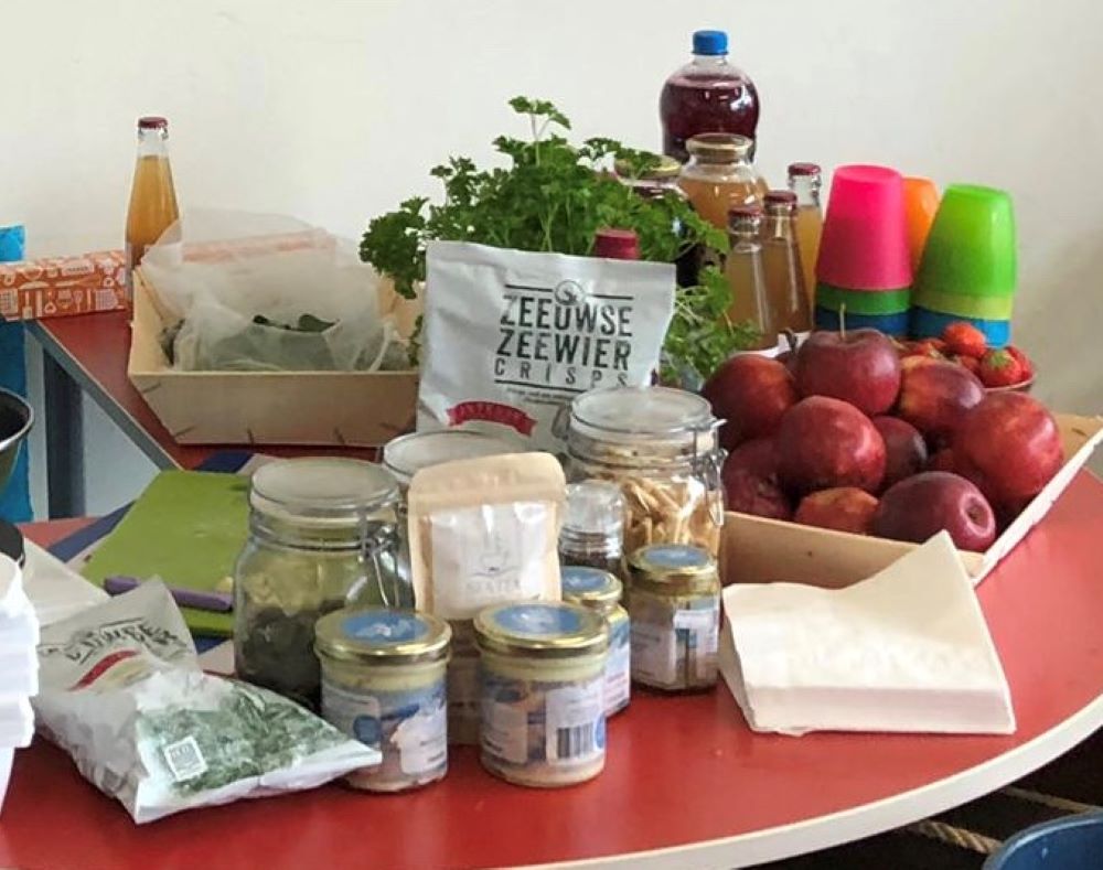De andere afspraak was met groep 8 van OBS Wemeldinge. Hun juf, een vriendin van mij, had aangegeven dat ze gedurende 2 weken een project ‘Zeeland’ hebben. En natuurlijk hoort daar een ‘Smaakles’ bij… En zo geschiedde! Wat was het leuk en wat hebben de kinderen veel geproefd! Van zeewiercrisps & zeewiercrackers tot verse zeekraal & lamsoren. En van appelsap tot zwarte bessensap & cassis (want ja, ook daar zitten Zeeuwse zwarte bessen in!) Maar wat ik echt fantastisch vond is dat alle kinderen geproefd hebben van de Zeeuwse tapijtschelpjes die ik ter plaatse heb staan klaarmaken op het elektrische kooktoestelletje van de juf ! Op een enkeling na, kende niemand deze schelpjes die gekweekt worden in het Veerse Meer. Supertof dat Joop Paauwe van Meromar Zeeland uit Yerseke ze beschikbaar heeft gesteld.