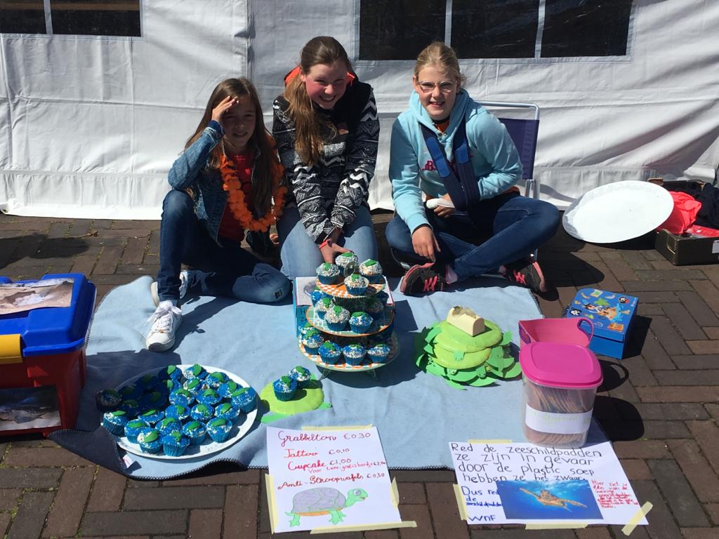 Dit jaar was ik met Koningsdag tóch thuis en dan moet de traditie worden gevolgd: op deze dag sta ik en met mij nog een aantal vriendinnen (met of zonder kinderen) om stipt 09.30 uur klaar voor de aubade; zingen we het Wilhelmus, Zeeuws volkslied én het Weumelienge lied uit volle borst mee en gaan we vervolgens koffie/thee drinken met oranje tompouces/soesjes/donuts. Ondertussen staat de tv aan en worden de outfits van koningin Maxima en de prinsessen besproken. Een van de vriendinnen moest op tijd weg want haar dochter ging met enkele vriendinnetjes op de ‘Kleedjesmarkt’ op het Dorpsplein staan. Uiteraard ben ik daar nog gaan kijken en wow, wat goed! De dames verkochten eigengebakken cakejes en antistroopwafels voor het Goede Doel. Hier wordt ik echt blij van. Zo jong en dan al zó bewust bezig – chapeau!